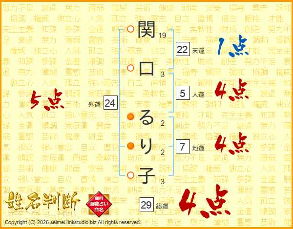 関口るり子さんの総運は29画の4点!
