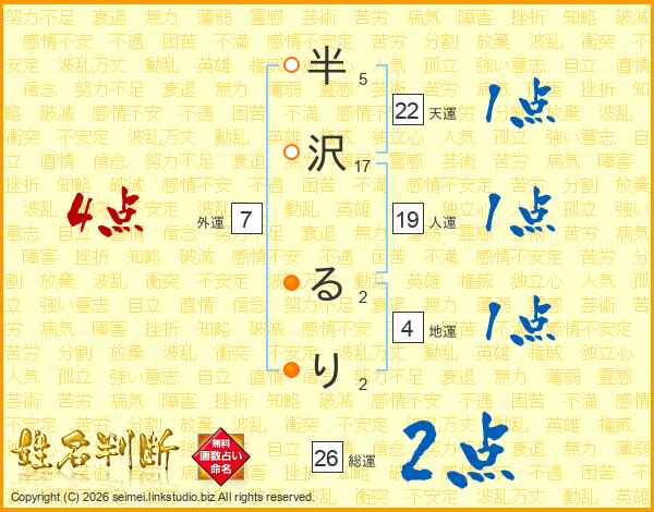 半沢るりさんの総運は26画の2点!