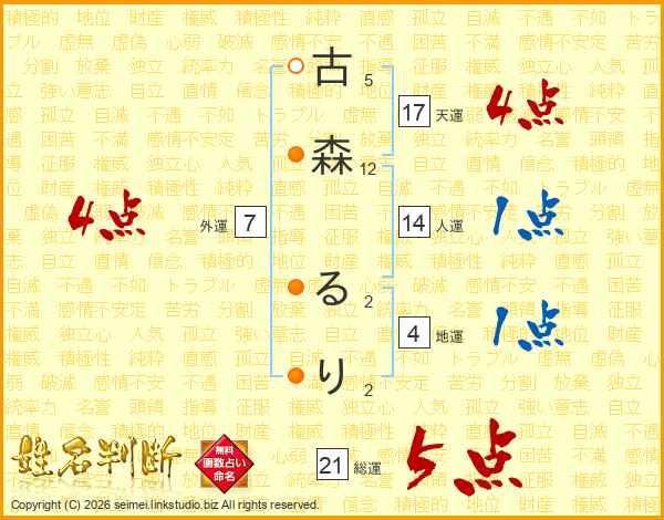 古森るりさんの総運は21画の5点!