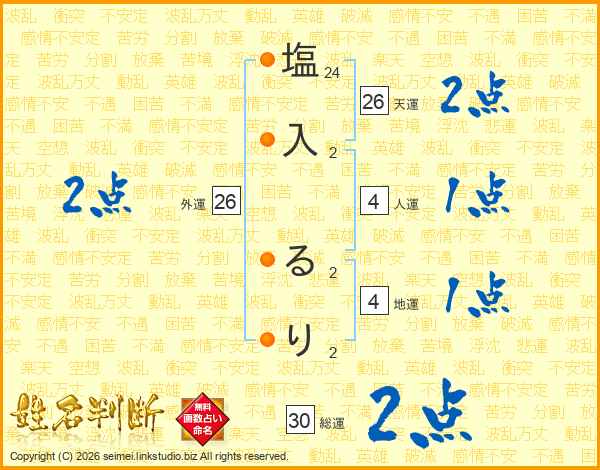 塩(24画)入(2画) る(2画)り(2画)