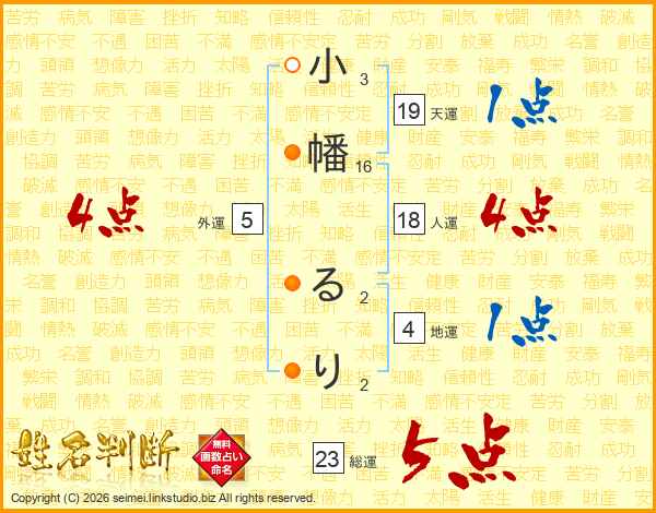 小幡るりさんの総運は23画の5点!