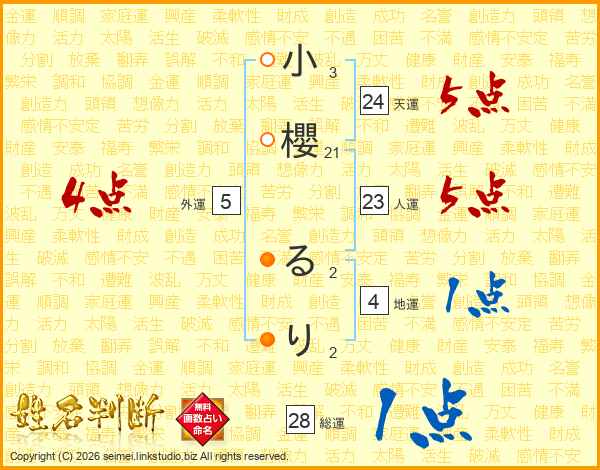 小櫻るりさんの総運は28画の1点!