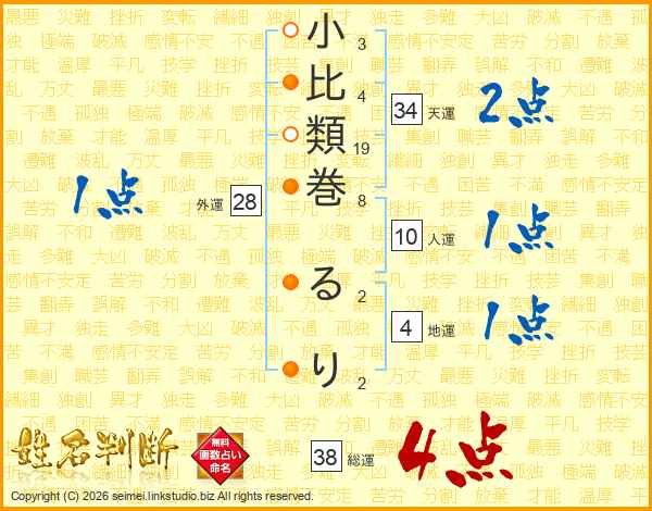 小(3画)比(4画)類(19画)巻(8画) る(2画)り(2画)