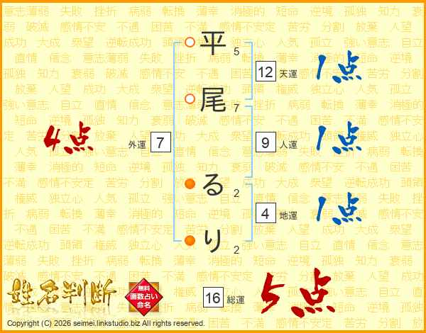 平尾るりさんの総運は16画の5点!