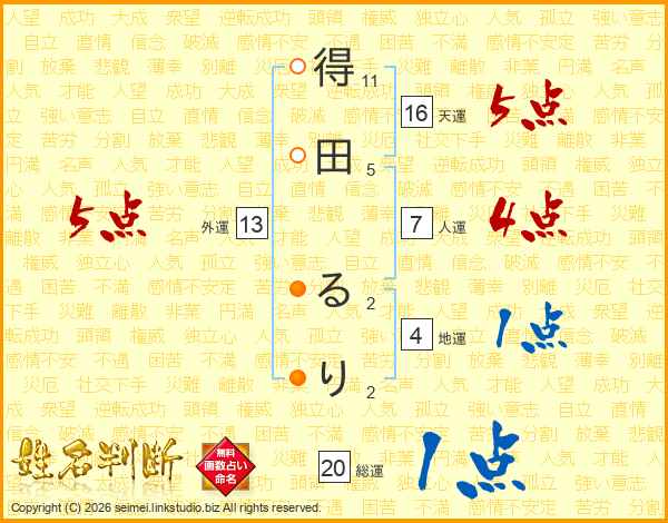 得田るりさんの総運は20画の1点!