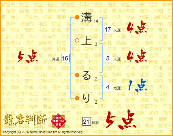 溝上るりさんの総運は21画の5点!