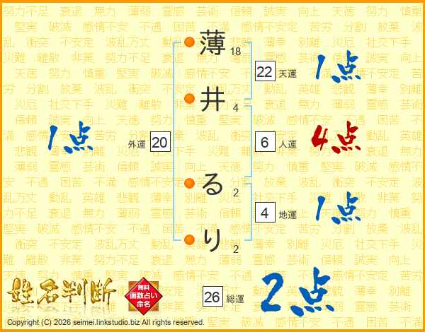 薄井るりさんの総運は26画の2点!