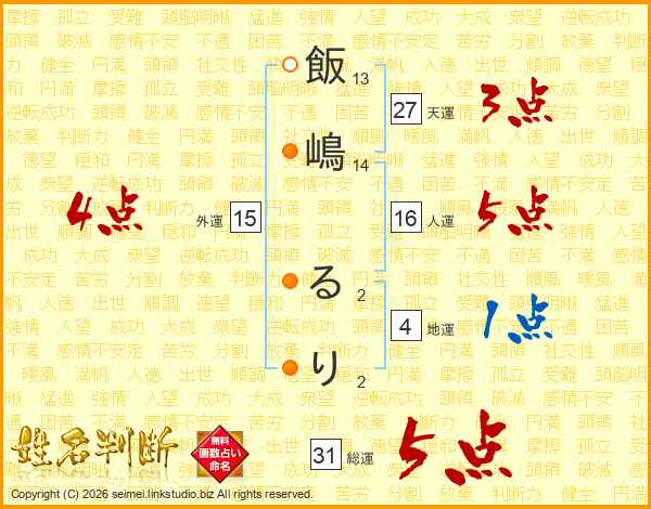 飯嶋るりさんの総運は31画の5点!