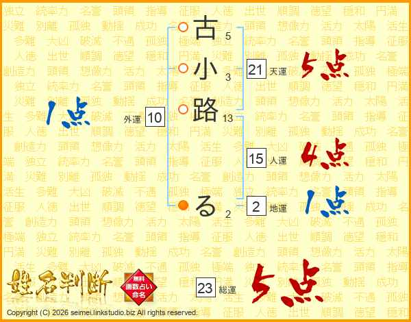古小路るさんの総運は23画の5点!