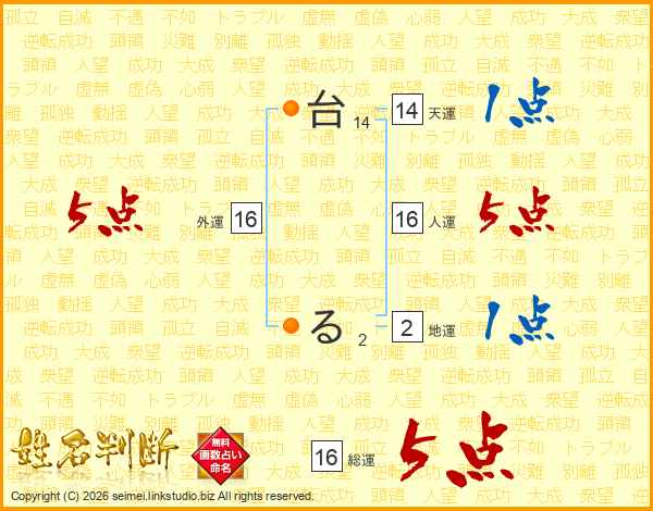 台るさんの総運は16画の5点!