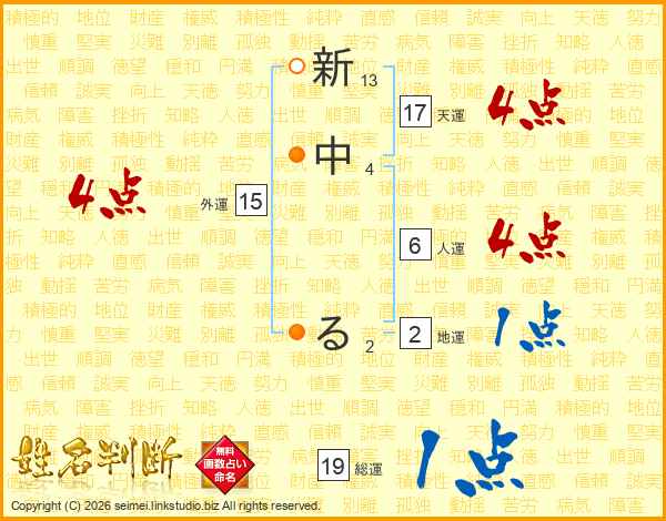 新中るさんの総運は19画の1点!
