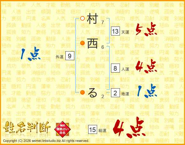 村西るさんの天運は13画の5点!