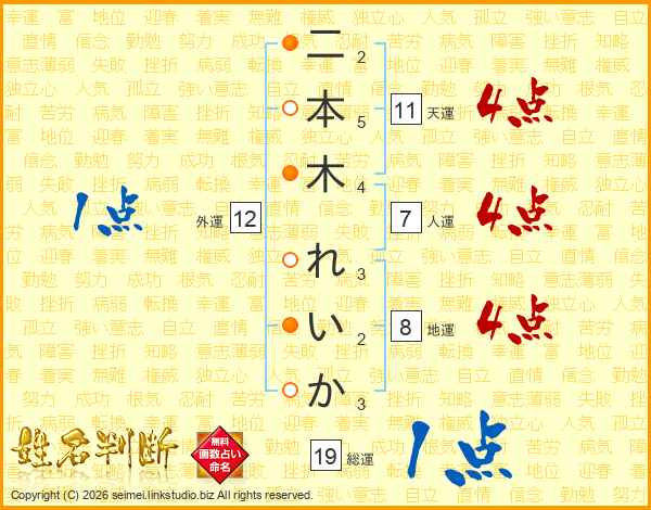 二本木れいかさんの総運は19画の1点!