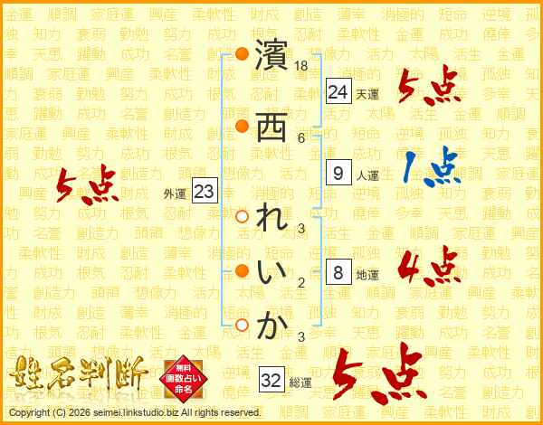 濱西れいかさんの天運は24画の5点!