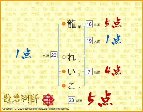 龍れいこさんの総運は23画の5点!