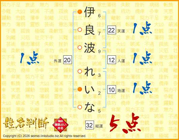伊良波れいなさんの総運は32画の5点!