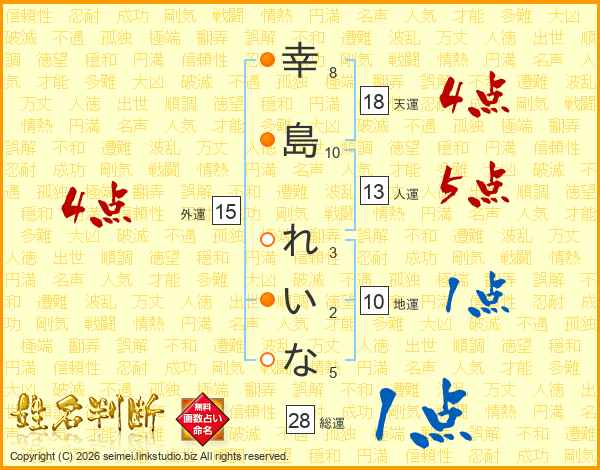 幸島れいなさんの総運は28画の1点!