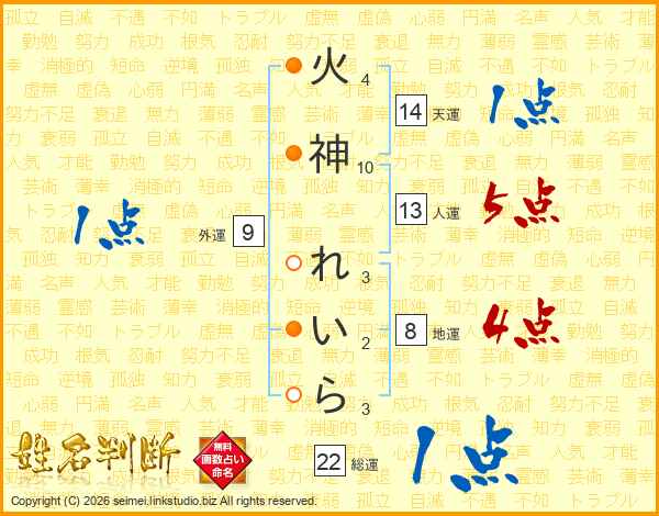 火(4画)神(10画) れ(3画)い(2画)ら(3画)