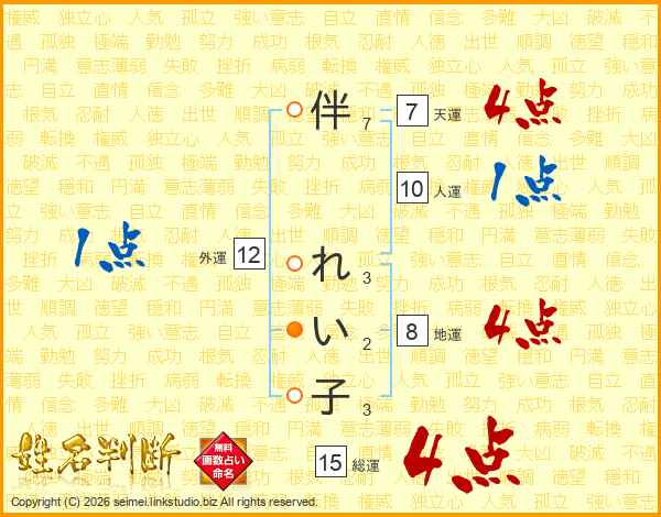 伴れい子さんの天運は7画の4点!