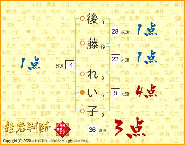 後藤れい子さんの外運は14画の1点!
