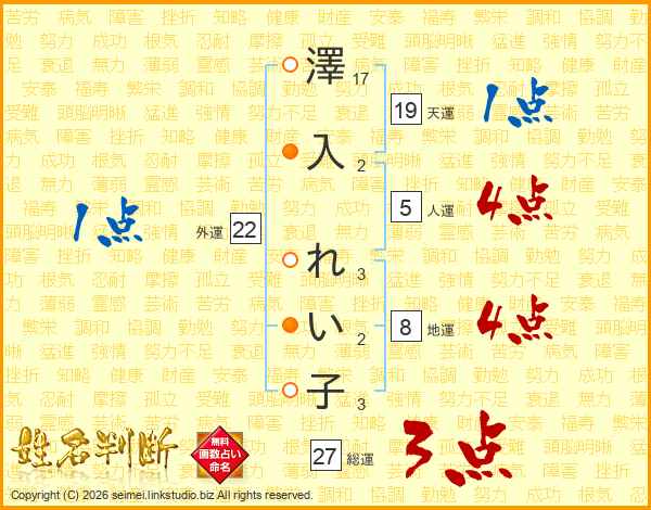 澤入れい子さんの総運は27画の3点!