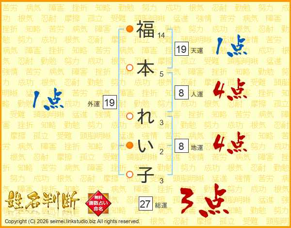 福(14画)本(5画) れ(3画)い(2画)子(3画)