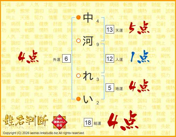 中河れいさんの総運は18画の4点!