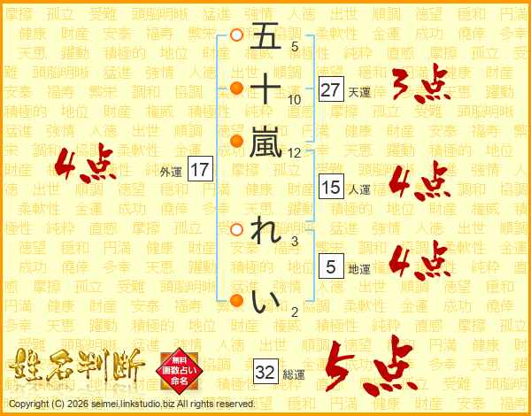 五十嵐れいさんの総運は32画の5点!