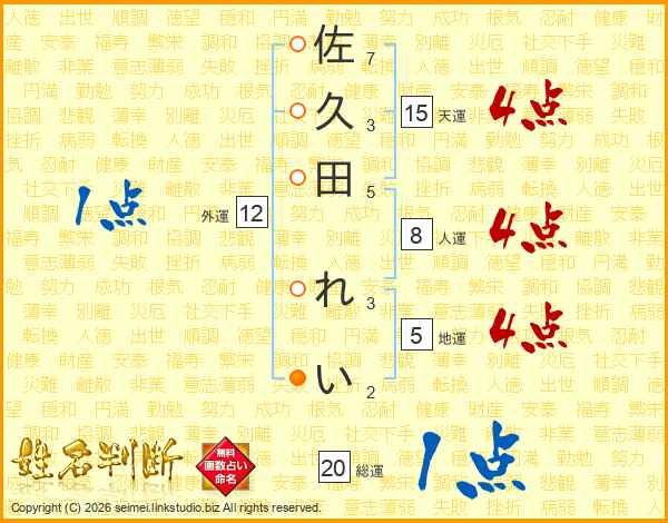 佐久田れいさんの総運は20画の1点!