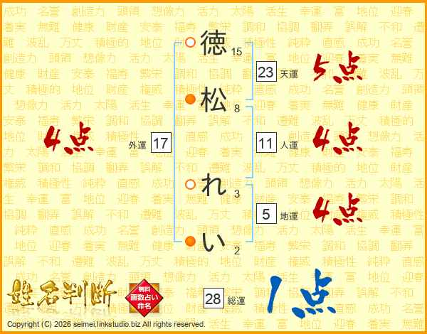 徳松れいさんの外運は17画の4点!