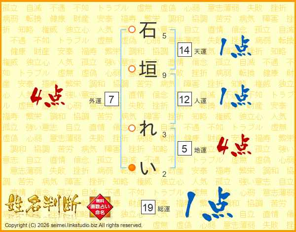 石垣れいさんの総運は19画の1点!