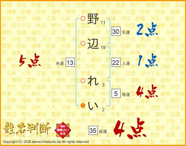野辺れいさんの総運は35画の4点!