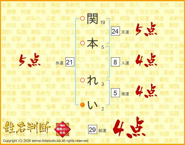 関本れいさんの総運は29画の4点!