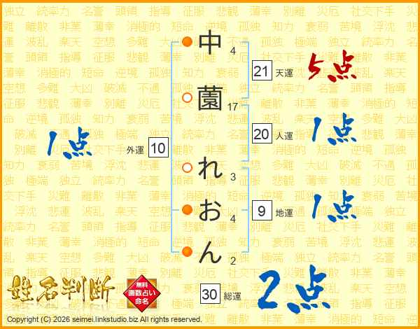 中薗れおんさんの人運は20画の1点!