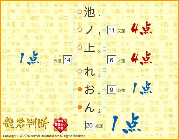 池ノ上れおんさんの総運は20画の1点!