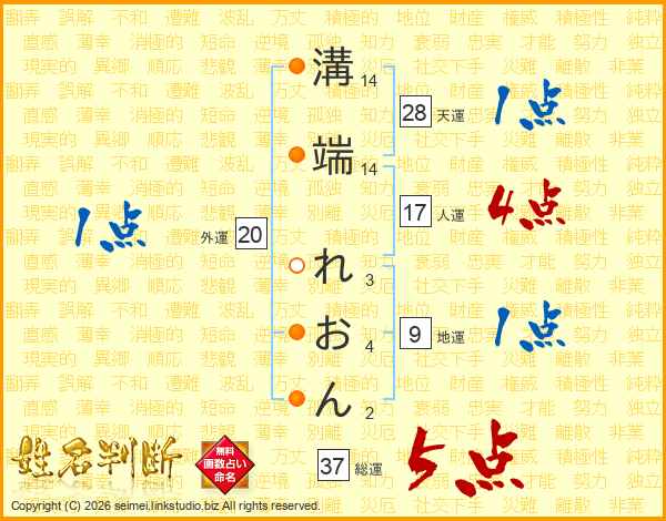 溝端れおんさんの総運は37画の5点!