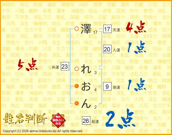澤れおんさんの総運は26画の2点!
