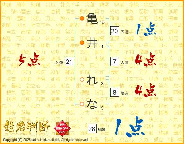 亀井れなさんの外運は21画の5点!