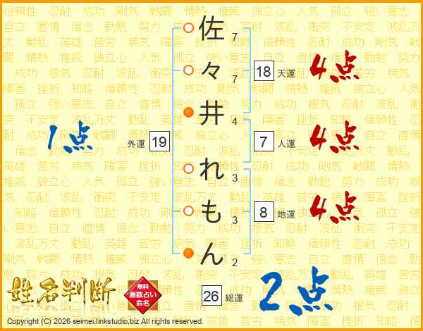 佐々井れもんさんの総運は26画の2点!