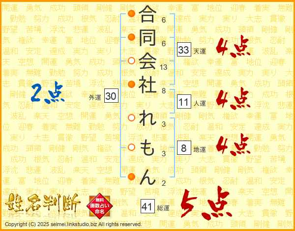 合(6画)同(6画)会(13画)社(8画) れ(3画)も(3画)ん(2画)