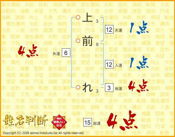 上前れさんの総運は15画の4点!