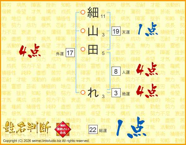 細山田れさんの総運は22画の1点!