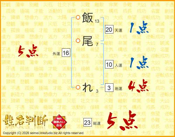 飯尾れさんの総運は23画の5点!