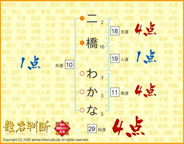 二(2画)橋(16画) わ(3画)か(3画)な(5画)