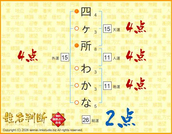 四ヶ所わかなさんの総運は26画の2点!