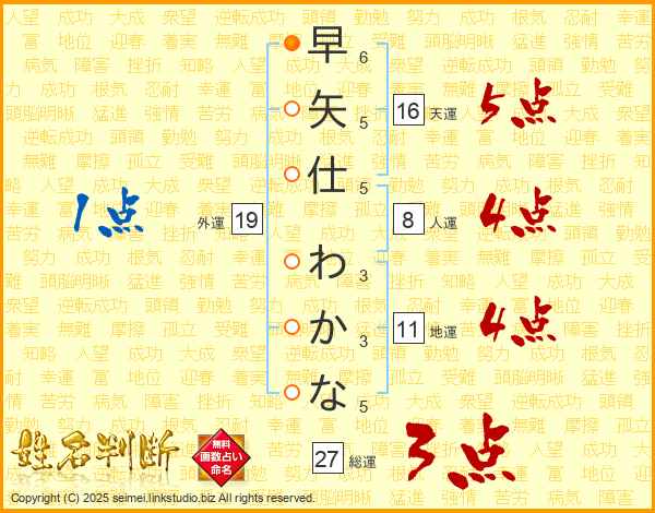 早(6画)矢(5画)仕(5画) わ(3画)か(3画)な(5画)
