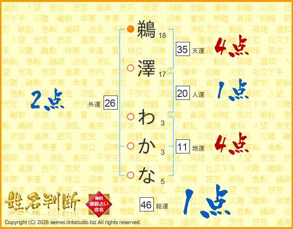 鵜澤わかなさんの総運は46画の1点!