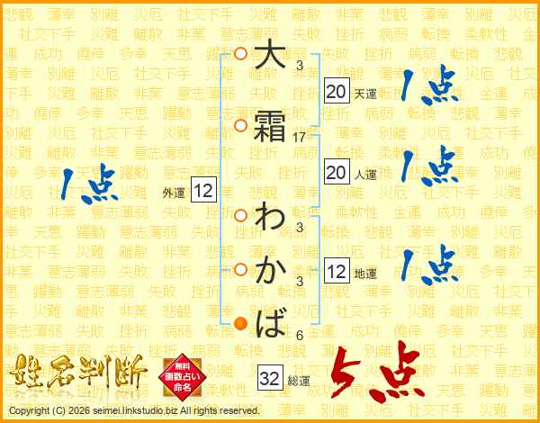 大霜わかばさんの総運は32画の5点!
