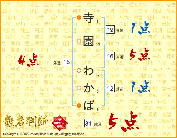 寺園わかばさんの総運は31画の5点!