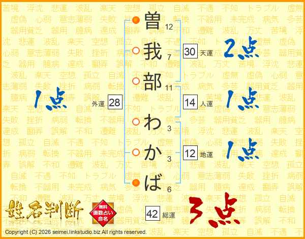 曽我部わかばさんの天運は30画の2点!